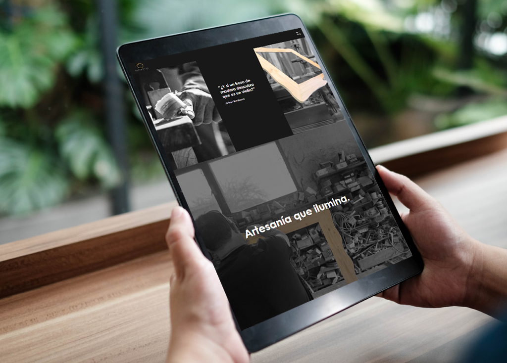 El proyecto de Lumminar-ia, compañía especializada en luminaria artesanal, tuvo un reto aun mayor de creatividad, ya que uno de los requisitos del cliente fue que tuviera muy poco contenido.