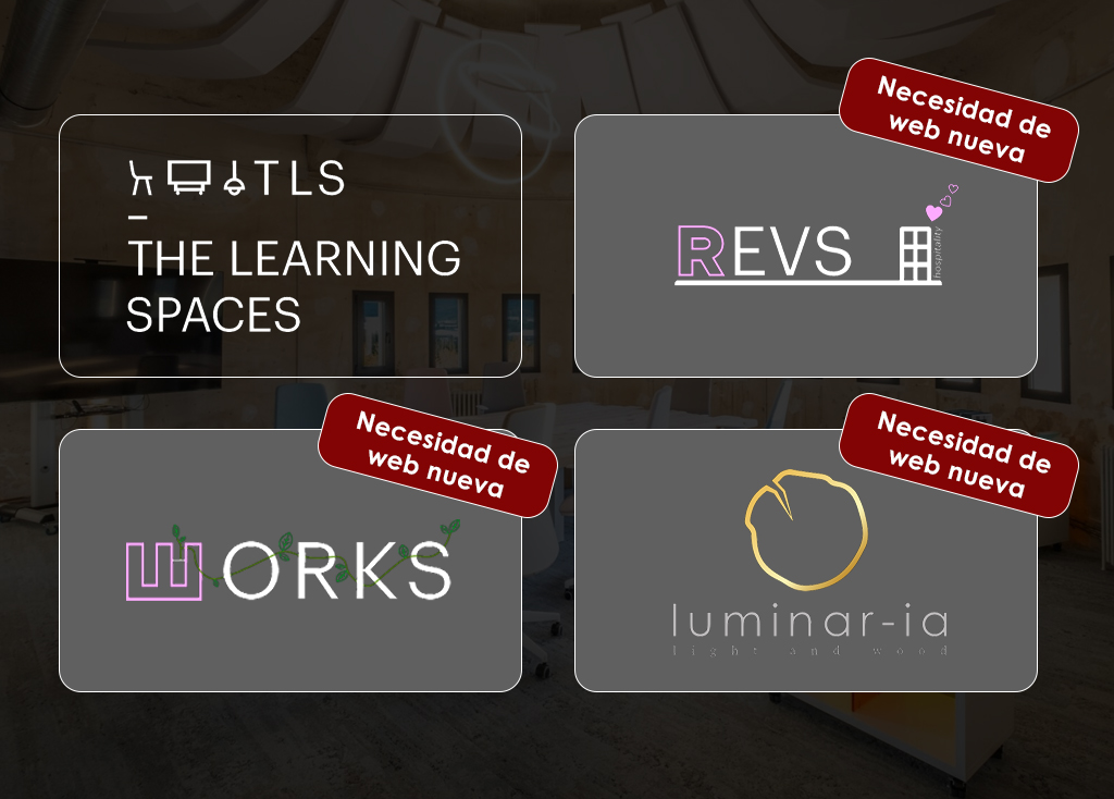 Diseño web y copywriting creativo para un conjunto de páginas web propiedad de The Learning Spaces, un grupo empresarial especializado en diseño y construcción de espacios, y sus empresas filiales: Works (especializados en oficinas y espacios de trabajo), Revs (especializado en hoteles) y luminar-ia (especializados en luminaria artesanal).